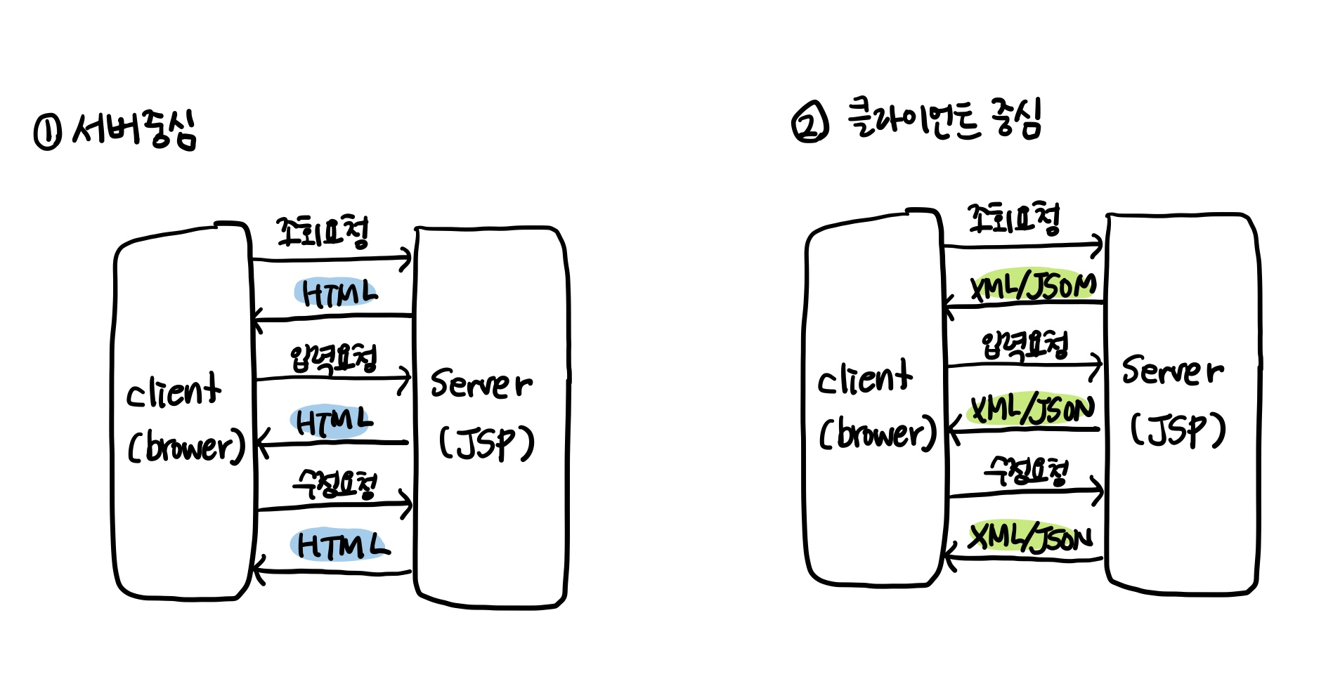 서버 중심의 개발 방식 : 화면구성이 서버에서 이루어진다.