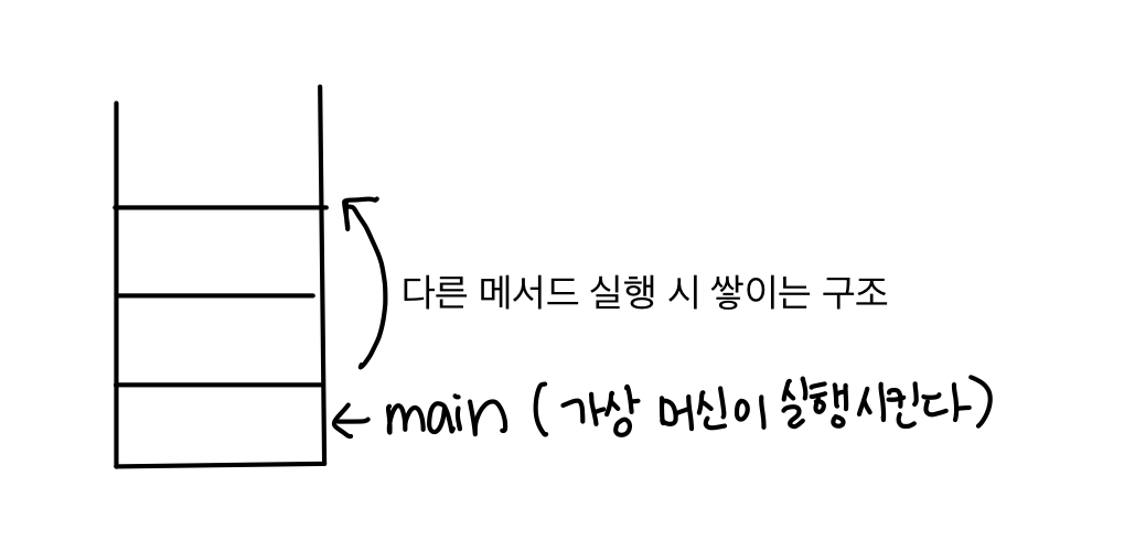 - Stack 영역 : 메서드 호출 순서대로 쌓이는 구조