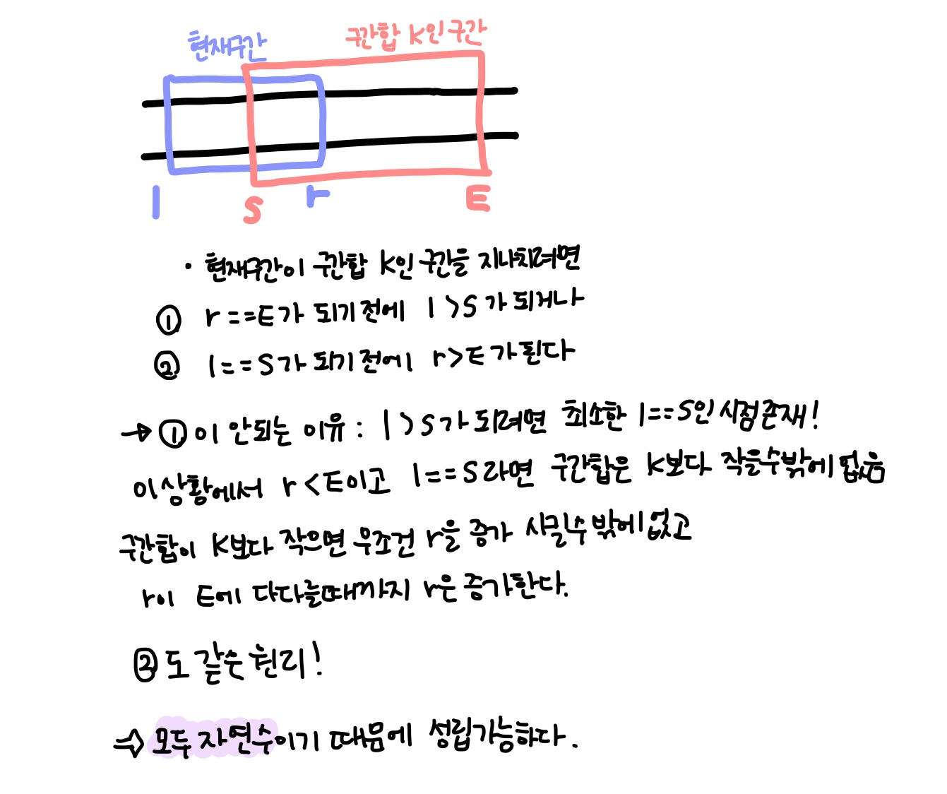 투포인터로 모든 경우를 탐색할 수 있다는 것을 이해하는데에 조금 오래 걸리긴 했지만, 이해를 완료하였다 !
