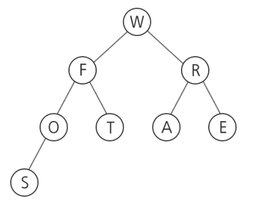 위 트리를 in-order 형식으로 순회할 경우 SOFTWARE 라는 단어를 읽을 수 있다.
